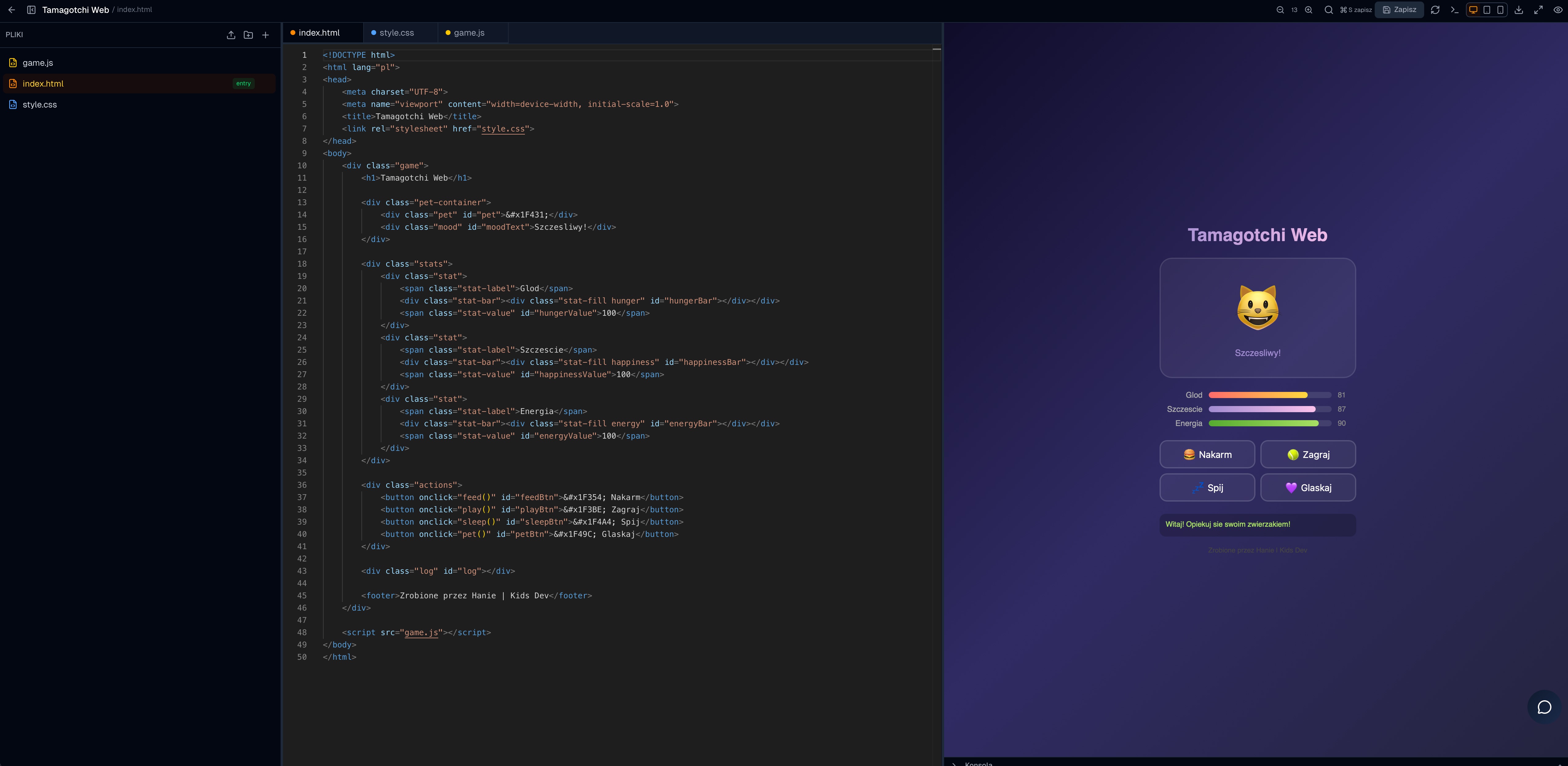 Profesjonalne srodowisko do nauki HTML, CSS i JS dla szkol i mlodych tworcow.